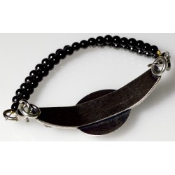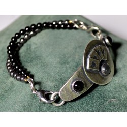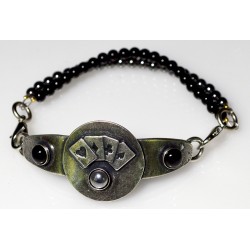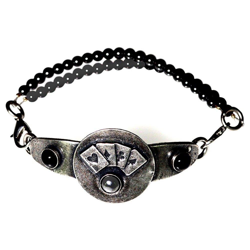 Antiqued Silver Solid Brass Luck Of The Draw Aces Rockband Bracelet - Onyx and Hematite