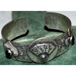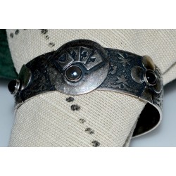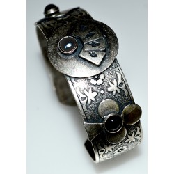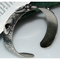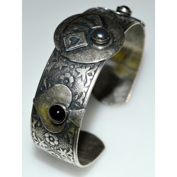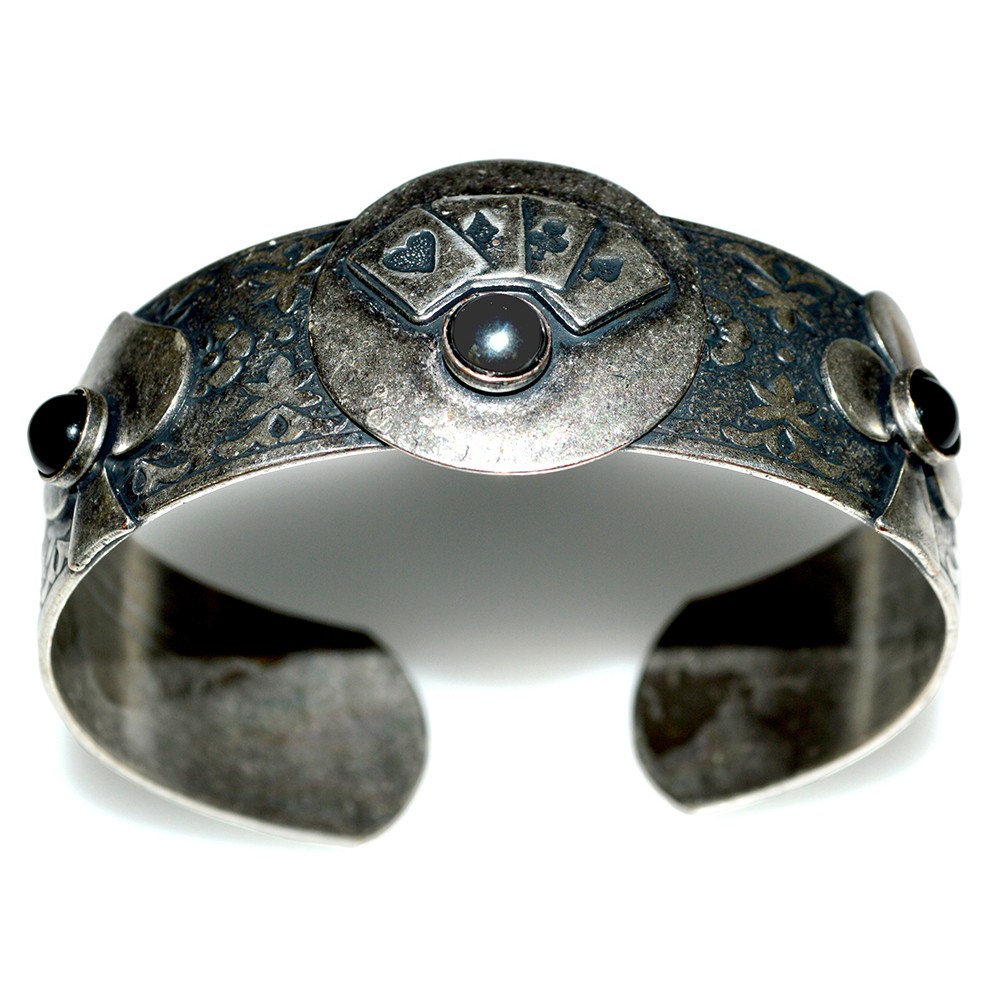Antiqued Silver Solid Brass Luck Of The Draw Aces Cuff Bracelet - Onyx and Hematite