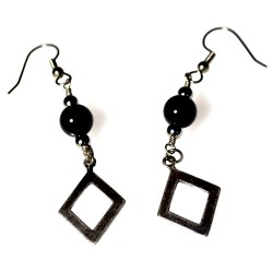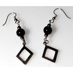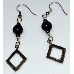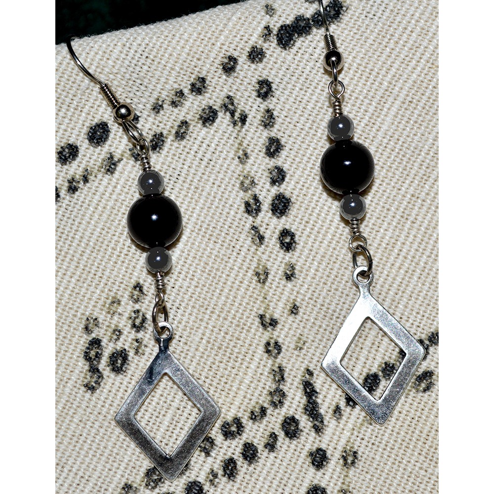 Mirror Antique Silver Luck Of The Draw Ace Of Diamonds Dangle Earrings - Onyx and Hematite
