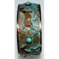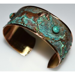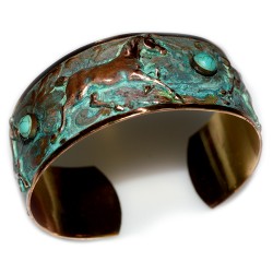2025 Verdigris Patina Solid Brass Equestrian Running Horse Cuff - Turquoise