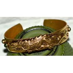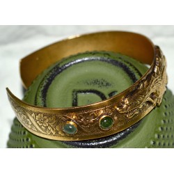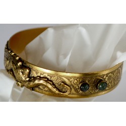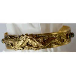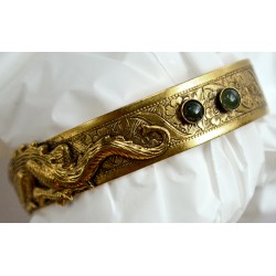 Antique Gold Narrow Dragon Collection Cuff - Nephrite Jade
