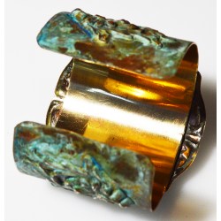 Olive Patina Solid Brass Zinnias Floral Wide Cuff - European Crystals
