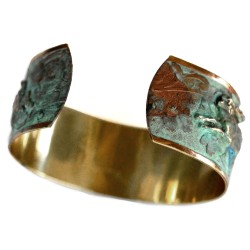 Verdigris Patina Solid Brass Running Rabbit Cuff - Jade